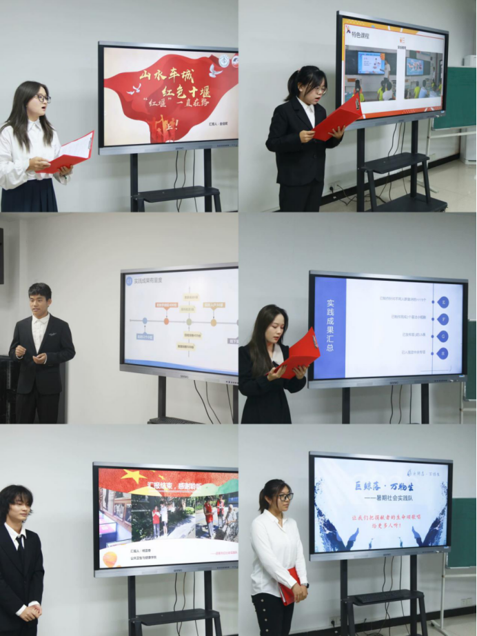 会议上,评委老师们根据现场展示情况提出中肯意见,致力于提高社会实践队创新性、实践性和影响力。最后,分党委副书记牛佳老师对本次活动进行了总结。牛书记指出,同学们在本次社会实践中深入基层贴近民生,敢于结合学校、学院专业特色,积极关注国家政策,深挖红色基因,且实践内容有深度、有宽度、有特色、有创新、有成果,同时也指出了同学们在答辩过程中的不足,鼓励同学们开拓思路、积极探索、不断攀升,打造我院品牌实践队伍。