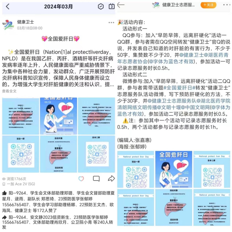 据悉,本次活动参与人数共计822人,活动宣传文章QQ、微博两大平台转发量合计433次。此次活动旨在通过普及肝炎、肝纤维化等防治知识,倡导广大学生做到早发现、早预防、早治疗,尽可能减少肝硬化等肝病发生的几率,营造健康校园。