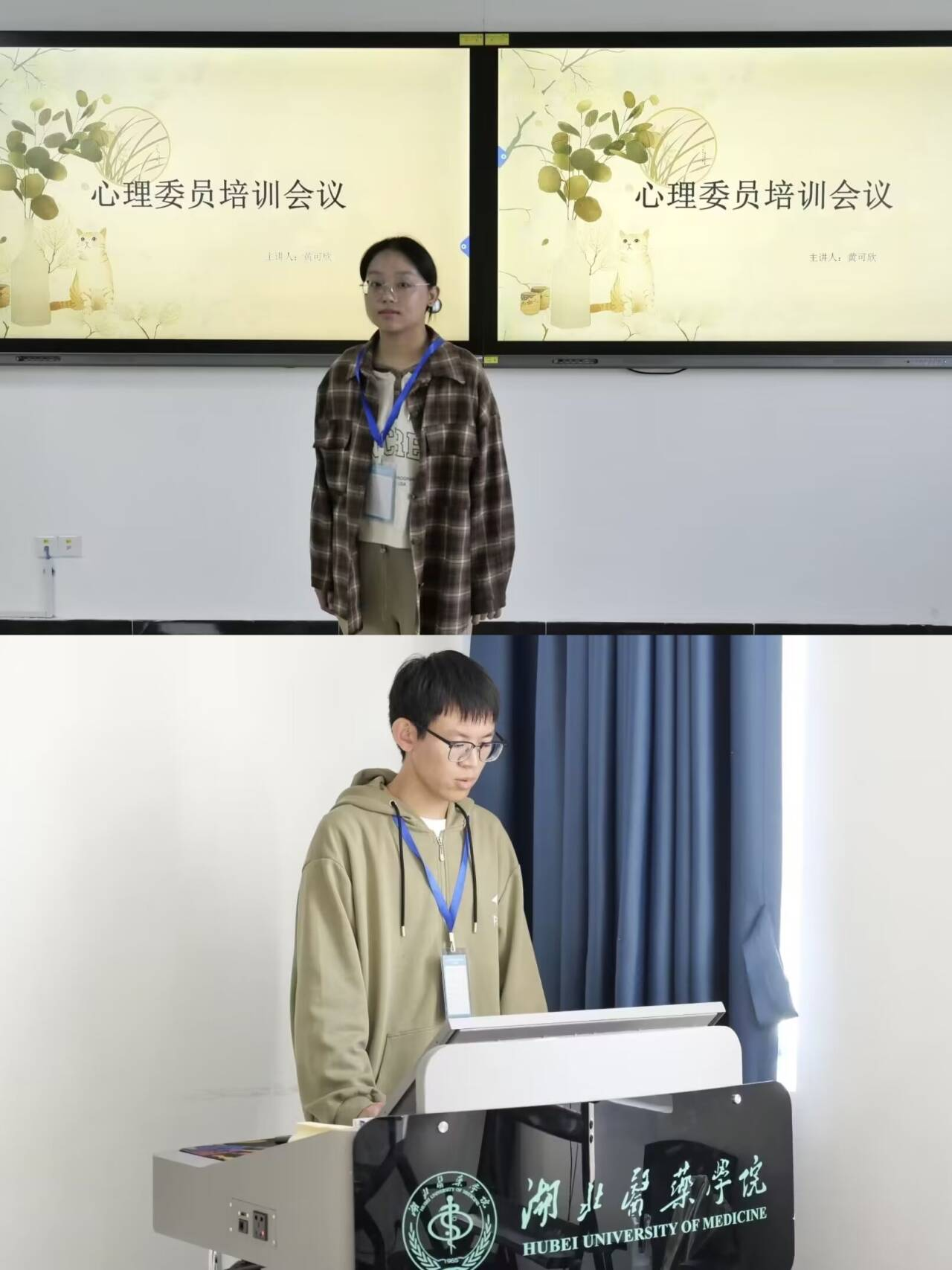 心理权益部黄可欣和刘宇轩向各班心理委员和生活委员讲解工作职责和工作流程,提醒心理委员严格遵循保密原则,关注班级学生心理状态,适时组织心理危机识别、干预,为同学们及时进行心理疏导。