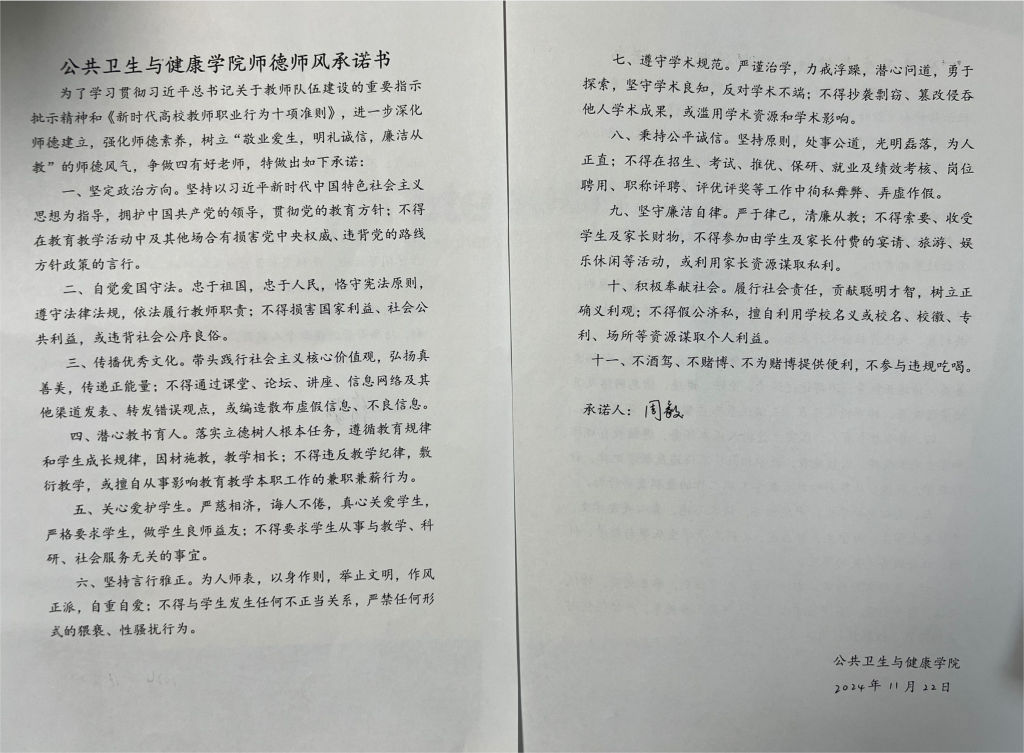 最后,新入职青年教师签订了《英国上市公司官网365师德师风承诺书》。